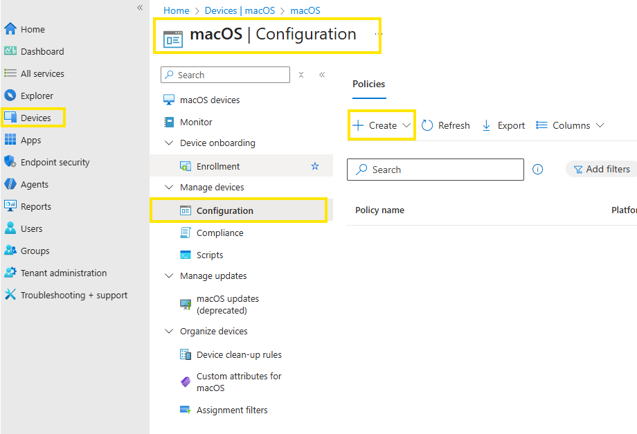 Go to Devices → macOS → Configuration