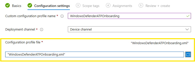 This onboarding package is deployed as a custom configuration profile in Intune.