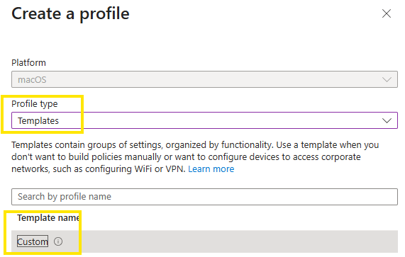 Profile type -> Templates -> Custom